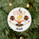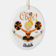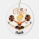 Ornement blond mignon de pom-pom girl d'acclamation noire et orange. Facile à personnaliser avec votre nom et date. Visitez notre magasin pour regarder cet ornement dans une grande variété de couleurs d'école et de couleurs de cheveux