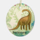 La conception originale de beaux-arts d'un dinosaure brun de Brachiosaurus par l'artiste Carolyn McFann du studio de ronronnement de deux chats a imprimé sur une qualité et facilement un ornement personnalisable de Noël. Grande idée de cadeau pour des anniversaires, des vacances ou toute occasion pour des enfants aux adultes !