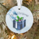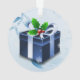 Ajoutez une touche de fantaisie à votre sapin de Noël avec un cadeau de Noël bleu. Le design ornemental présente un cadeau de Noël bleu vif orné de baies sèches et de flocons de neige tombant contre un élégant parchemin et arrière - plan feuille. Autres cadeaux et objets de vacances disponibles avec ce design aussi.