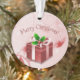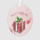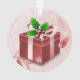 Ajoutez une touche de fantaisie à votre sapin de Noël avec un cadeau de Noël rouge. Le design ornemental présente un cadeau de Noël rouge vif orné de baies sèches et de flocons de neige tombant contre un élégant parchemin et arrière - plan feuille. Autres cadeaux et objets de vacances disponibles avec ce design aussi.