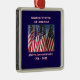 250e anniversaire 1776 à 2026, États-Unis d'Amérique, ornement d'arbre de Noël. Un grand jalon pour les USA ! Photo de drapeaux américains agitant dans le vent, et le texte patriotique en font un merveilleux souvenir - un événement unique dans toute une vie ! Grand ornement de Noël carré haut de gamme en métal. Tous droits réservés © 2025 Alan & Marcia Socolik.