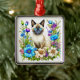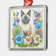 Ornement Carré Argenté Ai Aquarelle Siamese Chat en Fleurs
