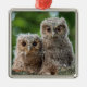 Ornement Carré Argenté Animaux de bébés cutest | Deux jeunes hiboux