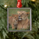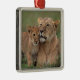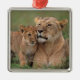 Ornement Carré Argenté Animaux de bébés cutest | Lion Cub & Mother