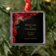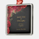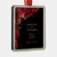 Ornement Carré Argenté Anniversaire du Mariage Floral Rouge