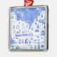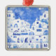 Ornement Carré Argenté Aquarelle Santorin Grèce