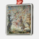 Ornement Carré Argenté Autumn Tailwag Whimsical Golden Retriever Dogs Oil