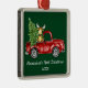 Ornement Carré Argenté Baby First Christmas Camion rouge Moose Green