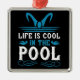 Ornement Carré Argenté Baignade - La vie est cool dans la piscine