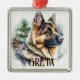 ORNEMENT CARRÉ ARGENTÉ BEAU CHIEN ALLEMAND SHEPHERD DE COULEUR D'EAU