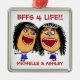 Ornement Carré Argenté Best Friends BFFS or Sisters Cartoon CUSTOM