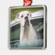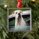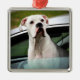 Ornement Carré Argenté Boxeur blanc dans une voiture