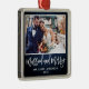 Ornement Carré Argenté Brosse Rustique en bois bleu Script Marié et Joyeu