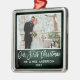Ornement Carré Argenté Brosse Script Bois Vert Mariage Premier Noël