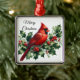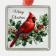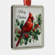 Ornement Carré Argenté Cardinal et Holly Joyeux Noël
