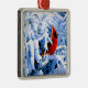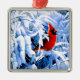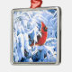 Ornement Carré Argenté Cardinal Rouge dans la neige d'hiver