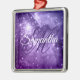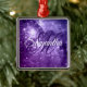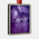 Ornement Carré Argenté Celestial Purple Starry Sparkle Fancy Monogram