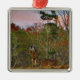 Ornement Carré Argenté Cerf avec ciel bleu rose