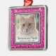 Cet ornement de photo de chat mémorial adorable avec un bord de paillettes rose, les mots "À jamais dans nos cœurs", le nom de votre chat et ses années de vie sera magnifique sur votre arbre. Vous le chérirez autant que vous chérissez vos souvenirs de votre chat bien-aimé qui est décédé.