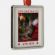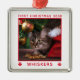 Ornement Carré Argenté Chat de Noël Nom photo Année Personnalisée