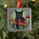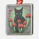 Ornement Carré Argenté Chat noir et champignons sauvages de la forêt roug