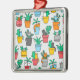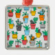 Ornement Carré Argenté Chats dans les pots à fleurs