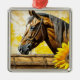 Ornement Carré Argenté Cheval et Tournesol Belle AI Art