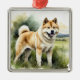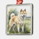 ORNEMENT CARRÉ ARGENTÉ CHIEN AKITA NAÏTE & BLANC