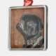 Ornement Carré Argenté Chien de Carlin noir