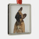 Ornement Carré Argenté Chiot de bouledogue français (7 mois)