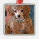 Ornement Carré Argenté Chiot pelucheux de caniche d'abricot