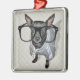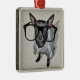 Ornement Carré Argenté Chiwawa noir avec la photo en verre