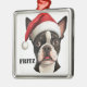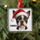 ORNEMENT CARRÉ ARGENTÉ CHRISTMAS BOSTON TERRIER CHIEN AVEC SANTA HAT