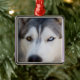 Ornement Carré Argenté Closeup Stoic Regard d'un malamute de l'Alaska