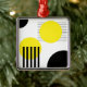 abstract illustration with geometrical (circles and stripes) shapes decoration in yellow and black colors on white background.