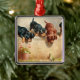 Ornement Carré Argenté Curieux Chiots Dachshund et une grenouille