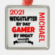This custom ornament featuring the quote-part "Weightlifter by Day Gamer by Night" is perfect for any weightlifter that loves playing games.