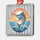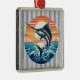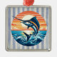 Ornement Carré Argenté Custom Coastal/nautical/beach marlin sunset