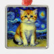 Ornement Carré Argenté Cute Kitten Starry Night Van Gogh