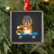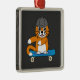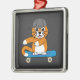 Ornement Carré Argenté Cute Orange Chat sur Skateboard Cartoon