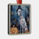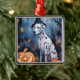 Ornement Carré Argenté Dalmation d'Halloween avec effroi Citrouille