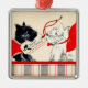 Ornement Carré Argenté Deux Chiens écossais, Terrier écossais noir et bla
