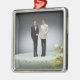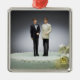 Ornement Carré Argenté Deux figurines de marié sur le gâteau de mariage
