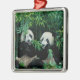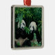 Ornement Carré Argenté Deux pandas mangeant du bambou ensemble, Wolong
