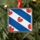 Drapeau de la Frise, une province dans Pays-Bas. Elle se compose des rayures diagonales bleues et blanches ; dans les rayures de blanc il y a rouge pompeblêden, le feuille du nénuphar jaune, qui peut rappeler un les coeurs, mais selon les instructions officielles "ne devrait pas être en forme de coeur".