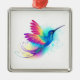 Ornement Carré Argenté Exotic Rainbow Hummingbird