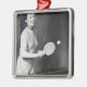 Ornement Carré Argenté Femme jouant au ping-pong