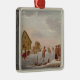 Ornement Carré Argenté Figures patinage dans un paysage d'hiver