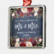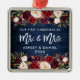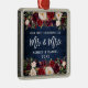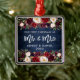 Bois Bleu Rustique, Écriture Moderne au Pinceau, Fleurs de Bourgogne Aquarelle, Notre Premier Noël en tant que Monsieur et Madame Coeur Ornement de Mariage