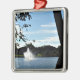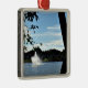 Vue sur le lac Mirror à la fontaine sur le lac créé dans un ornement de Noël en métal